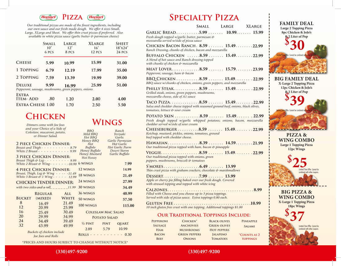 Alongside savory bites, the menu features familiar beverages—from soft drinks and bottled water to energy drinks and teas—complementing the laid-back atmosphere and simple dining experience. Deals that combine pizzas and wings offer convenient choices for larger groups or family meals, making it easy to enjoy a hearty meal without fuss.