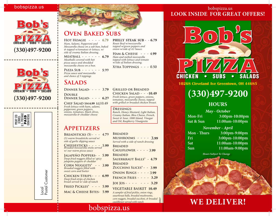 Bob's Pizza Greentown Menu